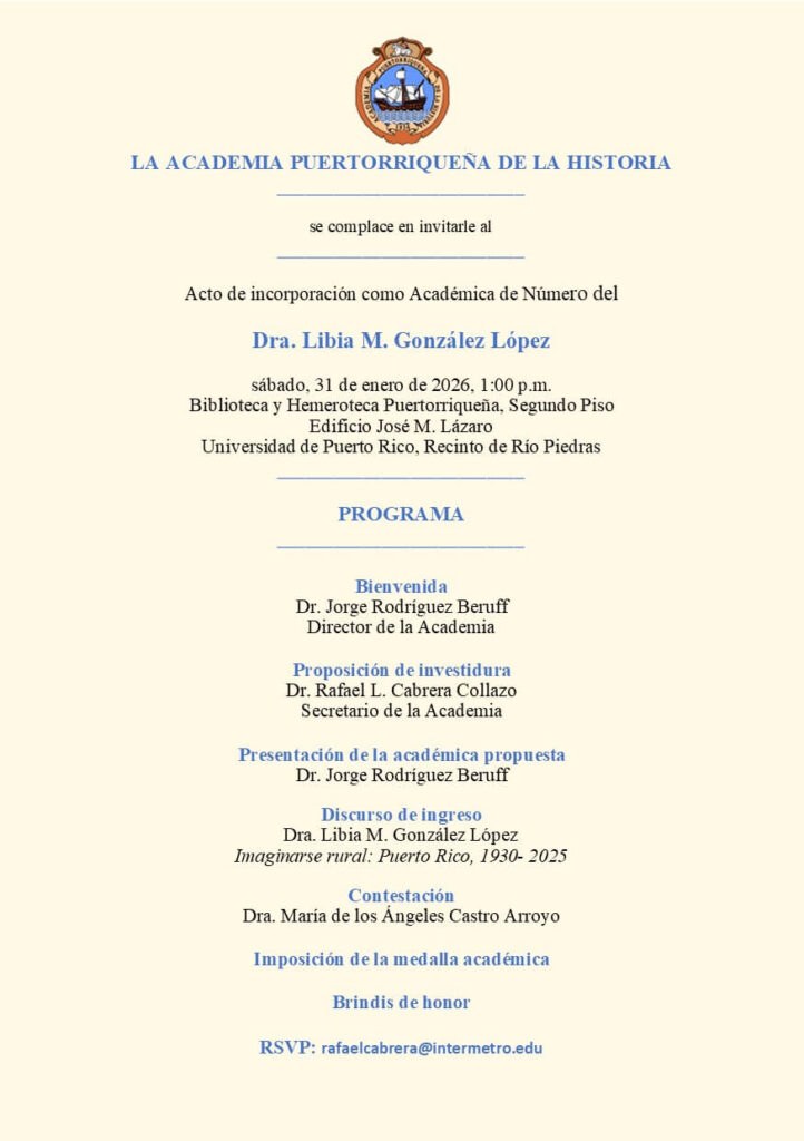 La ACADEMIA PUERTORRIQUEÑA DE LA HISTORIA se complace en invitarle al