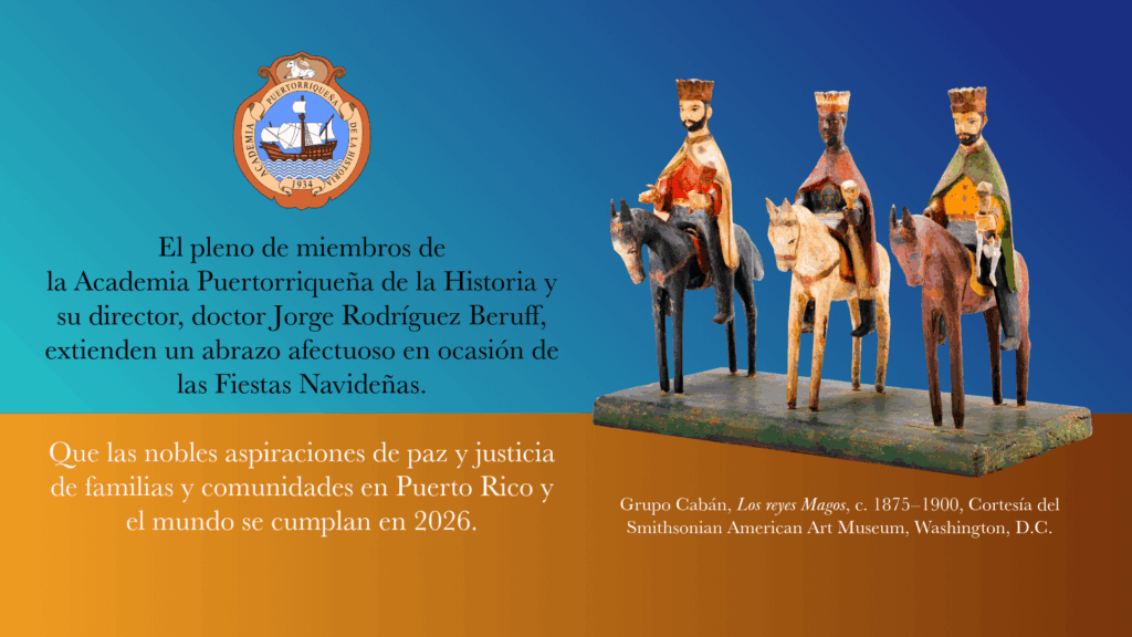 El pleno de miembros de la Academia Puertorriqueña de la Historia y su director, doctor Jorge Rodríguez Beruff, extienden un abrazo afectuoso en ocasión de las Fiestas Navideñas. Que las nobles aspiraciones de paz y justicia de familias y comunidades en Puerto Rico y el mundo se cumplan en 2026.